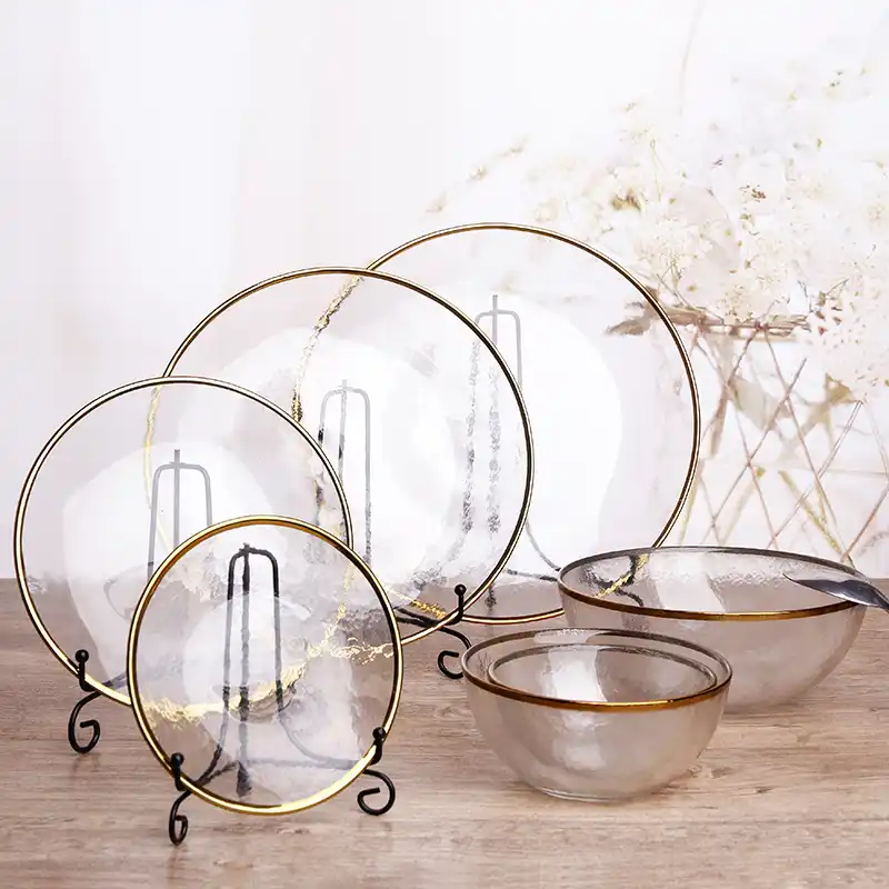 isolatie jungle servies. glas bestek slakom diner plaat soepkom gouden rand vlakke plaat servies transparant voedsel lade glas servies 1pcs dinnerware sets aliexpress